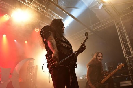 Der überpünktliche Beginn der ersten Vor-Band VREID hat einige Besucher der von Anfang an gut gefüllten Kölner Essigfabrik durchaus überrascht. Dass die Norweger nicht vor leeren Rängen spielten und erste Metalheads bereits heftig die Matte rotieren ließen, stellte unter Beweis: ihr klassisch angehauchter, leicht experimenteller Melodic Black Metal kam bei den Anwesenden durchaus gut an. Zudem erlaubte das sich stetig füllende Haus eine ordentliche Album-Promo. Indes, gleichwohl die neuen Nummern von „The Skies Turn Black“, VREIDs mittlerweile zehntem Output seit Band-Gründung im Jahr 2004, live zum Zuge kamen, so wurden überdies Songs vergangener Tage („Into The Mountains“) performt. Insgesamt ein solider Auftakt.