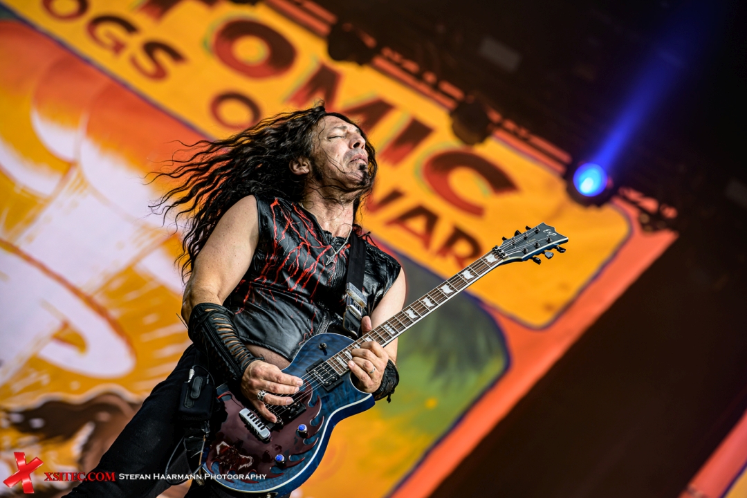 Frankreichs tonnenschwerer Export: präzise wie ein Uhrwerk, wuchtig wie eine Springflut. Die HARDER bekommt tektonische Riffs, hypersaubere Doublebass-Parts und ökologische Untertöne. Die Texte weisen teilweise spirituelle Einsichten aus, die im Infield, nicht zuletzt aufgrund des wieder einmal herunterprasselnden Regens, nicht wirklich wahrgenommen werden. Die französischen Metal-Meister liefern eine Darbietung, die sowohl technisch atemberaubend als auch spirituell gewaltig ist. Als der Himmel sich verdunkelt, macht das hypnotische, hämmernde Intro von „Born For One Thing" einem Set Platz, das sich wie ein urtümliches Ritual anfühlt. Die Visuals von Entwaldung und Ozeanverschmutzung während „The Chant" und „Amazonia" sind eindringlich und verwandeln das Konzert in eine machtvolle, gemeinsame Aussage. Das synchronisierte Headbangen während „Stranded" ist ein Bild für die Götter, in dem die hier versammelte Metal-Armee im Schlamm zur Einheit wird. Großartig.